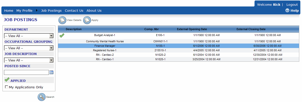 - To view posting details, click a job posting, and then the View Details button.