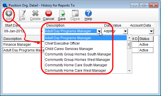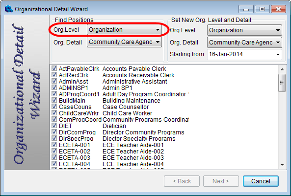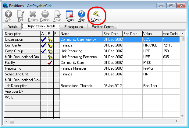 This should be an Organization or Facility level so that all of the positions that have been configured for the organization are listed in the lower pane.