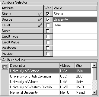 - If necessary, ensure that the value selected for attributes such as Source are the same for competencies of the same type. In the example of the Bachelor of Science and Nursing degrees, the attribute value selected determines what lookups appear in the Attribute Values pane and will be available for selection in Quadrant Self Service. If University is selected for the Source attribute for the Bachelor of Nursing competency, and Source is selected for the Bachelor of Science competency, and the lookups are different for each, the choices available for selection for each degree could be different in Quadrant Self Service.