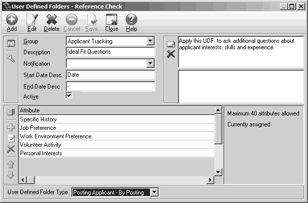 Here are some samples of the UDF window, showing you how you can configure Posting Applicant – Global, and Posting Applicant – By Posting UDFs: