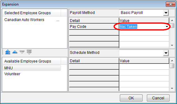 When you select a schedule method, one of more details requiring values appear in the Schedule Method section of the Expansion dialog.